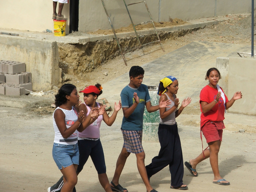Бой барабанов, скандирование, сальса, рассказы о борьбе с контрреволюцией, о социальных программах, в которых участвуют местные жители – бывшие безработные, а сейчас – сотрудники социальных служб. Среди волонтеров – местный учитель английской школы со своими лучшими учениками. Он освоил эту профессию три года назад, а до этого был разносчиком, и едва ли мог грамотно писать по-испански.