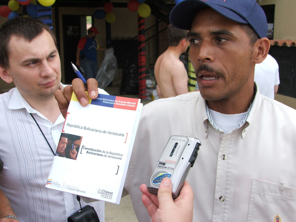 Мы общаемся с молодыми лейтенантами-теньентес, среди которых одна девушка-офицер, и их командиром, капитаном гвардии. Все они вооружены штурмовыми винтовками бельгийского производства (обижаются, когда мы приняли это оружие за американское), все отлично экипированы, держатся уверенно, с достоинством, и даже этим очень не похожи на украинских и российских военнослужащих. Все – открытые сторонники президента Чавеса и цитируют боливарианскую конституцию 2000 года. Подчеркивают, что она предусматривает широкое участие населения в управлении страной. Солдаты верят в Боливарианскую революцию, верят в социальные реформы, и очень довольны, что им приходится защищать образовательные и медицинские программы, а не трон кучки олигархов, как это делают их коллеги в большинстве стран. Кроме того, им хорошо платят, их уважают друзья и боятся враги – и это также вызывает у солдат немалое удовлетворение. Им очень нравятся фестиваль и его гости. Общение между нами завязалось уже в первые часы приезда в Миранду, разговорами о перевороте 2002 года. Даже самые молодые ребята в камуфляже подчеркивали роль армейских масс в его ликвидации. Впрочем, армии приходится вступать в бой и сегодня. Против сил, которые не прекращают атаковать ее в подконтрольных буржуазии СМИ, а по ночам стреляют в солдат из-за угла. Этим камуфлированным мальчикам приходится иметь дело с опытными военно-политическими диверсантами империализма. Накануне в Венесуэлу проникли пять сотен профессиональных агентов, подготовленных колумбийским филиалом ЦРУ. Надо надеяться, что солдаты Чавеса возьмут над ними верх.
