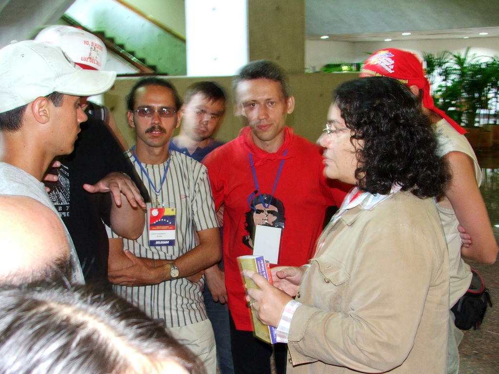 Быть может, это звучит пафосно? Нет, это лишь тень того, что было в этот день на Аллее Героев. Солидарность, чувство причастности к общемировому движению, такое необходимое в эпоху отката и разочарований. Нескончаемая колонна кубинской делегации, во главе с Фелипе Пересом Роке, утонувшая в море приветствий, проходит мимо колумбийцев, которых было бы немногим меньше, если бы военные и парамилитарес не задержали на границе несколько тысяч делегатов из этой страны. Судьба этих людей оставалась неизвестной и в конце фестиваля. Общее скандирование: «Вива Фидель!» «К черту Урибе!» Испанская делегация под республиканскими триколорами братается с немцами под флагами ГДР – наследники погибших революций, новая надежда на их возрождение. Прекрасно организованные делегации коммунистов Греции и Турции – их режимы десятилетиями стоят на грани холодной и горячей войны, а эта молодежь вместе несет плакаты давнишних жертв режима черных полковников и недавно замученных турецких комсомольцев. Палестинцы и левые израильтяне в куфиях с антишароновскими лозунгами на арабском и иврите. Революционные индейцы из Боливии и Эквадора, участники недавних революционных событий в этих странах, с палками, обмотанными колючей проволокой (новое средство против полицейских дубинок). Внушительная делегация от США, которой кричат «Вива!» глотками, охрипшими от проклятий американскому империализму. Впрочем, сами североамериканцы кричали их громче всех. Итальянские коммунисты поют «Бандера роса», «Белла Чао», «Катюшу», «Интернационал» вместе с украинцами из «Че Гевары» и омбудсменом Верховной Рады Ниной Карпачевой. Индийские профсоюзники, интеллектуалы в безупречных костюмах с прекрасным английским, разбитные ангольцы в майках с шестерней, мачете и звездой (протест против недавно предпринятой попытки изменить символику государства) и кроссовками на босу ногу. Серьезные боливарианские военные с винтовками и несерьезные европейские неформалы с фенечками. Оркестры, театральные представления, танцы, знакомства, политические дискуссии в кругу отдельных лиц и целых делегаций. Несколько здоровенных попугаев ара слетелись посмотреть на это зрелище. «Товарищи от Амазонии!», – приветствовали их фестивальщики, а операторы из «Телесур», новой информационной надежды Латинской Америки, снимали все это, и многое другое, что видел в эти дни Каракас – духовная столица прогрессивных сил нашего времени, которую не хочется и не получается назвать временной.
