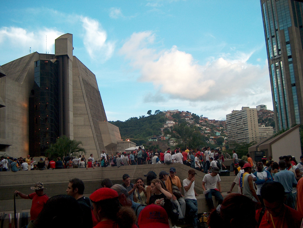 Воздух пахнет дешевым бензином, 150 боливаров (4 цента) за литр, и горелым мусором (враждебный Чавесу алькальд одного из муниципалитетов саботирует его утилизацию). В воздухе – рев огромного стада мотоциклов и машин (от старых кадиллаков гангстерской эпохи до новеньких внедорожников, жрущих дармовое топливо), поп-хит «Газолина», свистки активистов, бой барабанов, политические речевки. В воздухе – нестабильность, дыхание больших перемен, которые пришли сюда шесть лет назад. То, что можно определить словами «боливарианская революция». Наступают быстрые тропические сумерки, и десятки тысячи огоньков барриос на склонах гор превращают Каракас в рождественскую елку. Мы переполнены впечатлениями, оглушены этим удивительным, грязным, но таким ярким городом, его особой урбанистической красотой. В нем столько бедности, и столько энергии, устремленной на развитие и борьбу. Бедняки-рабочие поднимаются к своим домикам, пьют пиво, перекидываются словами. На многих из них заметны цвета сторонников Чавеса – темно-красные, с оттенком густой человеческой крови. Толпы детей гоняют мячи и просто стоят у бетонных стен. Впервые за много поколений у них появился шанс на другое будущее, и можно надеяться, что они понимают это сами.