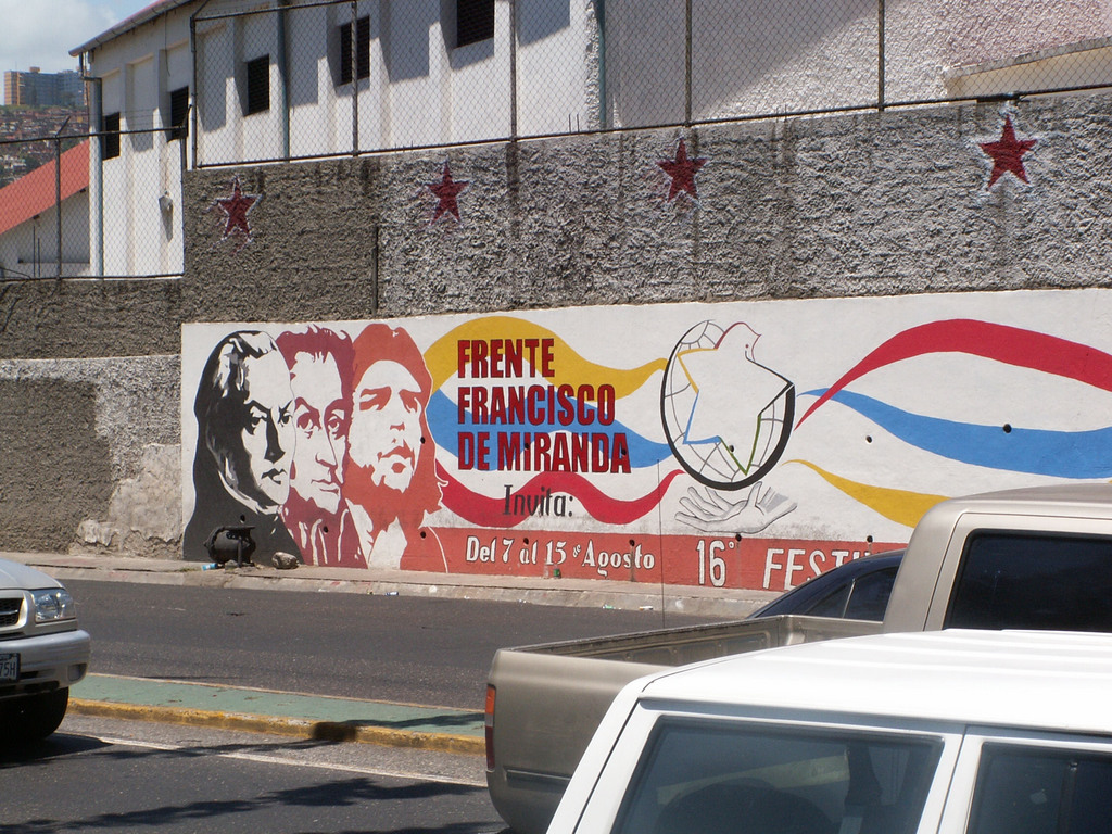 Впрочем, на тот момент нам было не до обобщений. Западный Каракас, сплошное гетто, сердце чавистского движения, встречал нас рекламой всемирного фестиваля молодежи и студентов – большие граффити с Мирандой, Боливаром и Че Геварой. Десятки фестивальных муралей и плакатов по обе стороны дороги на Каракас. Нашему «боливарианскому форду», старому автобусу с четками и обязательным портретом Чавеса на зеркале заднего вида, сигналили проезжающие машины, а их пассажиры махали руками, по пояс высовываясь из окна. До нас впервые донеслось: uh, ah! Chavez no se va!