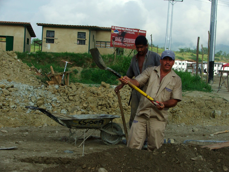 Внизу, в Миранде, строят новые дома – достаточно благоустроенные, с простой, но интересной архитектурной конструкцией. Массовое и быстрое, местами некачественное строительство. Кто-то может увидеть в нем тропический аналог хрущевок, но в стране барриос и ранчос это жилье для народа представляет собой значительный шаг вперед. Мы идем в один из крайних домов – на звуки песен и барабанов. Фиеста. На открытой лестнице собрались жители этого здания, работники продовольственного кооператива, убежденные чависты. Их переселили сюда из трущобных барриос, и новые дома кажутся им прекрасным жильем. Такие же люди поселятся в наших комнатах после конца фестиваля. Квартиры предоставлены в долгосрочный беспроцентный кредит, и распределяются общиной-кооперативом. Нередко здесь селят по производственному принципу. В Новой Миранде есть дома полицейских, кооператоров, социальных работников и работников коммунальных служб, солдатские дома. На углу улиц стоят плакаты программы жилищного строительства: “El Gobierno Bolivariano... Avanza” «Боливарианское правительство идет вперед». За три последних года, в рамках «плана Боливар» (строительство и ремонт социального жилья), программ «Вивьенда», «Ависпа» и «Ревиба», в стране построено пять таких городов, а сейчас начинает строиться новый – будущая столица Республики, Сьюдад-Либертад. Направленная по новому, общественному руслу нефть, вместе с энтузиазмом людей, начали менять лицо провинции, еще живущей жизнью, описанной у Маркеса и Льосы. Все это ощутимо изменило сознание обитателей новых домов. Басило Родригес из кооператива «Ана», активист Партии коммунистов Венесуэлы, рассказывает: боливарианское правительство делает ставку на развитие коллективной собственности, поощрение коллективного труда – то, что он сам называет «коммунизацией» общества. Рабочие и крестьяне Миранды очень горды тем, сколько людей во всем мире с вниманием и сочувствием смотрят на них сегодня.
