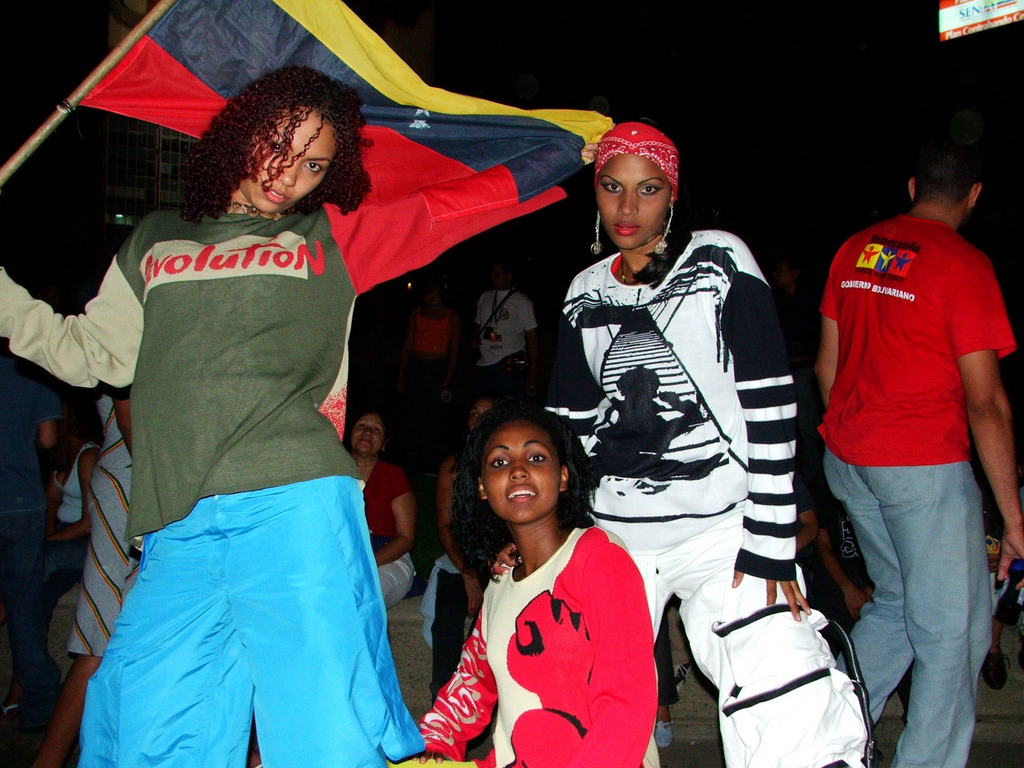 ...Левая культура Украины сумела показать себя в Боливарианской республике. По согласованию с организаторами хип-хоп саммита, мы привезли на него «Революцию» – коллекцию левого костюма Катерины Манчук. Ее демонстрировали тогда же, на Плаза Венесуэла, а в роли моделей, помимо прочих, выступили вокалистки из «Solo 3», открывавшие этот концерт. Самые красивые девушки Уго Чавеса! Они также способствовали теплому приему «Революции» и Украины, от имени которой выступила автор костюмов – Катя. «Вива Венесуэла! Вива Революсьон! Вива Чавес!» – скандировала она со сцены в толпу. Благодаря прямой трансляции «Телесур» это могли видеть обе Америки.