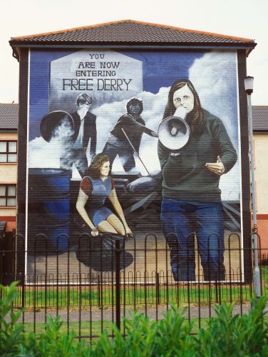Эти мурали - ведущая школа политического настенного рисунка. Говоря так, мы имеем в виду граффити ирландских республиканцев: социалистов, борцов за независимость своей родины. Их противники, ультраправые сторонники "единства с британской короной", тоже марают уличные стены. Однако идейное содержание политических рисунков определяет их качество. Реакционеры рисуют, поют, пишут много хуже революционеров. Многочисленные граффити правых в большинстве сводятся к банальной символике, рядом с портретами королевских династий. Физиономия королевы-матери не слишком вдохновляющий образ - в сравнении Че Геварой, идеалом художников-ирландцев.