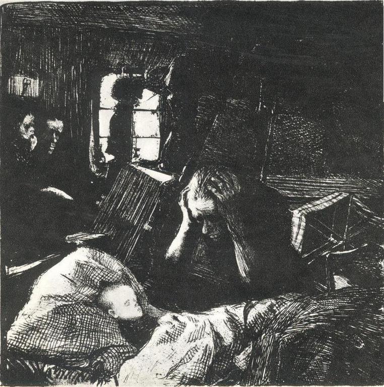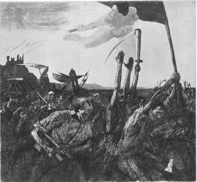 Эта «опасность» возрастала пропорционально росту художественного мастерства Кэте Кольвиц. Спустя несколько лет она шокирует имперских бюргеров своей "Крестьянской войной" - очередной серией офортов, посвященных великому антифеодальному восстанию германских крестьян XVI столетья.