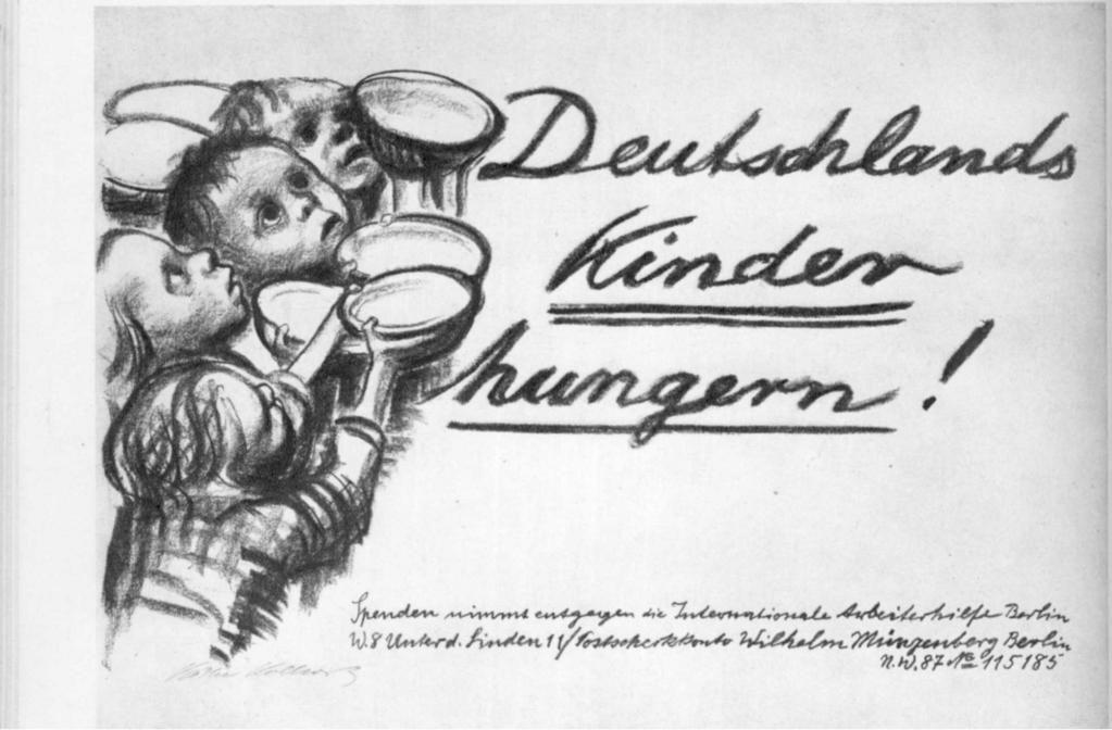 Она ответит на этот прямой вызов своей совести - всем своим творчеством времен расцвета и краха Веймарской Республики. С этих пор Кольвиц всецело посвящает себя печатной графике, лишь временами экспериментируя со скульптурой. Сотрудничая с демократическим журналом "Симплициссимус", разрабатывая плакатные рисунки для левой прессы, Кольвиц изображает простые, страшные своей обыденностью сценки из жизни берлинского дна. Она рисует голодных и оборванных беспризорников, недоедающие пролетарские семьи, замученных нищетой и забитых испитыми безработными мужьями женщин, доведенных до отчаяния самоубийц и умирающих в ночлежках стариков. Она рисует картины массовых демонстраций, замершие лица, вслушивающиеся в выступление рабочего агитатора, создает замечательные своей убедительной силой плакаты в помощь голодающей Советской России - с истощенными телами неестественно скуластых, умирающих людей.