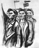 Вслед за этим, Кольвиц спросит себя в своем дневнике: "Имею я право изобразить прощание рабочих с Либкнехтом без того, чтобы при этом политически следовать Либкнехту? Или нет?"
