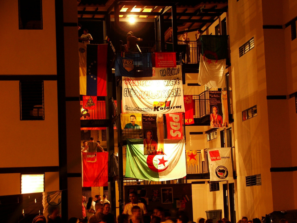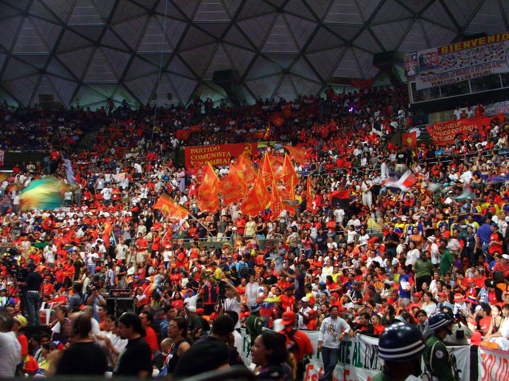 Быть может, это звучит пафосно? Нет, это лишь тень того, что было в этот день на Аллее Героев. Солидарность, чувство причастности к общемировому движению, такое необходимое в эпоху отката и разочарований. Нескончаемая колонна кубинской делегации, во главе с Фелипе Пересом Роке, утонувшая в море приветствий, проходит мимо колумбийцев, которых было бы немногим меньше, если бы военные и парамилитарес не задержали на границе несколько тысяч делегатов из этой страны. Судьба этих людей оставалась неизвестной и в конце фестиваля. Общее скандирование: «Вива Фидель!» «К черту Урибе!» Испанская делегация под республиканскими триколорами братается с немцами под флагами ГДР – наследники погибших революций, новая надежда на их возрождение. Прекрасно организованные делегации коммунистов Греции и Турции – их режимы десятилетиями стоят на грани холодной и горячей войны, а эта молодежь вместе несет плакаты давнишних жертв режима черных полковников и недавно замученных турецких комсомольцев. Палестинцы и левые израильтяне в куфиях с антишароновскими лозунгами на арабском и иврите. Революционные индейцы из Боливии и Эквадора, участники недавних революционных событий в этих странах, с палками, обмотанными колючей проволокой (новое средство против полицейских дубинок). Внушительная делегация от США, которой кричат «Вива!» глотками, охрипшими от проклятий американскому империализму. Впрочем, сами североамериканцы кричали их громче всех. Итальянские коммунисты поют «Бандера роса», «Белла Чао», «Катюшу», «Интернационал» вместе с украинцами из «Че Гевары» и омбудсменом Верховной Рады Ниной Карпачевой. Индийские профсоюзники, интеллектуалы в безупречных костюмах с прекрасным английским, разбитные ангольцы в майках с шестерней, мачете и звездой (протест против недавно предпринятой попытки изменить символику государства) и кроссовками на босу ногу. Серьезные боливарианские военные с винтовками и несерьезные европейские неформалы с фенечками. Оркестры, театральные представления, танцы, знакомства, политические дискуссии в кругу отдельных лиц и целых делегаций. Несколько здоровенных попугаев ара слетелись посмотреть на это зрелище. «Товарищи от Амазонии!», – приветствовали их фестивальщики, а операторы из «Телесур», новой информационной надежды Латинской Америки, снимали все это, и многое другое, что видел в эти дни Каракас – духовная столица прогрессивных сил нашего времени, которую не хочется и не получается назвать временной.