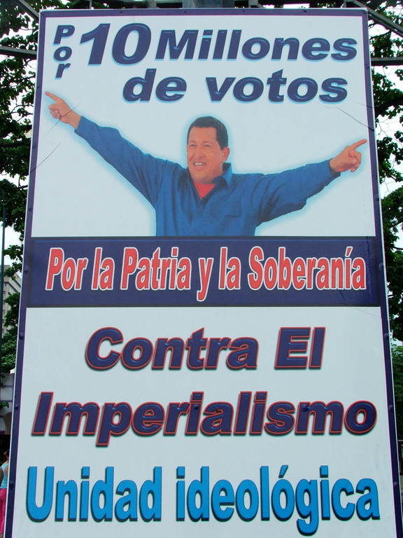 «Чавес не уйдет!». Самая популярная политическая речевка в Каракасе со времен инициированного и проигранного оппозицией референдума. Краткое содержание политической программы сторонников действующего президента.