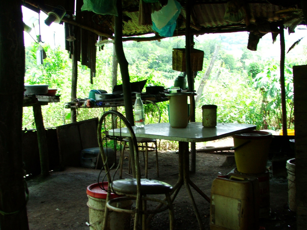 Поход к ранчос венесуэльских крестьян был устроен нами самостоятельно. Никто не может обвинить боливарианскую власть в показухе. Мы поднялись на холмы, в тропические заросли из детской мечты мальчишек наших широт, с банановыми плантациями, попугаями, колибри и большими бабочками. Венесуэлки-подростки, волонтеры Ванесса и Анхелика, деликатно увязались сопровождать нас в этот аграрный район – рураль, где на склонах разбросаны крестьянские ранчос, а люди с мачете рубят маис и маниоку. Сейчас они собрались на праздник в маленькой долине, у старика с бронзовым лицом и каменными чертами индейца. Нас угощают маисовой кашей, поят холодным пивом, задаривают початками кукурузы и маниокой. Приглашают посетить свои маленькие хижины вверху. Время, кажется, остановилось в этих деревянных крестьянских домах, среди глуши предгорий – это особенно видно в обстановке хижин и предметах быта. Здесь живут также, как сто и двести лет назад, и все странно напоминает деревянные постройки в северной и сибирской тайге – хотя вокруг растут не лиственницы, а патайя.