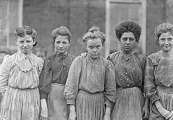 - "Одна из работниц текстильной фабрики. Иногда работает ночью. Выполняет всякую работу - за 48 центов в день. Отвечая о своем возрасте, она колеблется, говорит: "Я не помню". Потом говорит: "Я недостаточно взрослая для работы, но делаю ее не хуже взрослых". Из пятидесяти работниц здесь десять детей ее возраста".