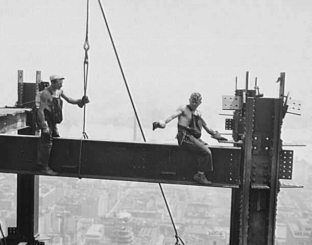 Люди на жаре вяло обсуждают чужую смерть. Бурса видел, как он падал. Оступился. Очень просто, голова закружилась на высоте. Или солнечный удар. Бурса очень боится высоты. Высоты боится Лера. Высоты боится Миша, за которым полгода службы в каких-то войсках, прыжки с парашютом «в полной выкладке». Они знают высоту, и потому во все глаза смотрели на старые фото строительства Эмпайр Стейтс Билдинг. Американские монтажники на безмерном расстоянии от земли. Двое немолодых работяг мирно беседуют на краю узкой стальной балки — совсем как грачи на жердочке. Здоровяк с физиономией ирландца балансирует на шатком карнизе. Внизу — сотни метров пропасти. Монтажники позировали охотно. Они брали почасовую оплату за съемку, как натурщики художественных студий — по десять долларов в час. В гонораре фотографа, Льюиса Хайна, было больше нулей. Его «Икар» обошел обложки всех крупных журналов того времени — молодой рабочий на канате перелетает бездонный пролет. Никакого обмана и никакой страховки.