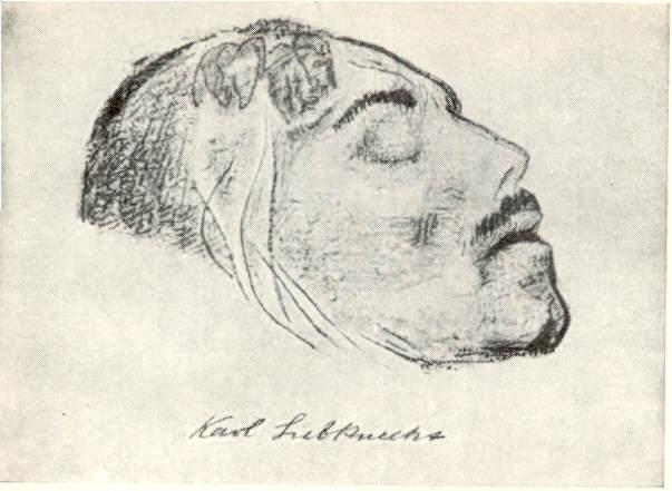 В своем дневнике Кэте тяжело переживает победу германской контрреволюции, гибель людей, провозгласивших рождение новой, социалистической Германии. В день похорон Карла Либкнехта она несколько часов простояла у его раскрытого гроба, сделав десятки рисунков с тела предательски убитого вождя, зарисовав шествие колонну берлинских рабочих, прощавшихся с Либкнехтом. На основе этих набросков Кольвиц создает всемирно известную литографию - горе германского пролетариата, скорбящего над своим мертвым вождем. "Громадное впечатление, которое произвела на меня печаль сотен тысяч возле его гроба, засадило меня за эту работу", - напишет она впоследствии. Вскоре, в тюрьме Моабит, художница будет рисовать тело другого основателя германской компартии - зверски убитого Лео Иогихеса.