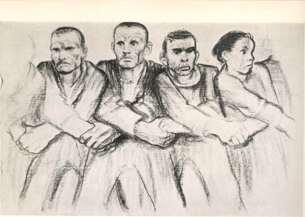 За все кровавые годы господства Третьей Империи Германия видела только одну выставку работ Кольвиц - множество ее рисунков было показано на "выставке искусства вырождения", рядом с картинами других выдающихся немецких мастеров, после чего рисунки художницы были публично сожжены на костре или разворованы "коллекционерами" из числа высокопоставленных гитлеровцев. Она жила в безвестности и забвении, третируемая обысками гестапо и ехидными издевательскими заметками в геббельсовской прессе, рисовала приходящую за людьми Смерть, лепила скульптуры убитых горем матерей, предчувствуя жертвы новых и новых войн. Только однажды Кольвиц позволила себе высказаться словом. Продавшийся нацистам искусствовед высмеявшего ее многолетние усилия, затраченные на изображение пролетарских голодранцев. Отвечая ему, она напишет: "Именно пролетариат был для меня прекрасен. Пролетариат в типических его проявлениях творчески вдохновлял меня. ...Позднее, когда при близком соприкосновении с рабочими я по настоящему узнала их нищету и беды, у меня возникло также чувство долга своим искусством служить пролетариату".